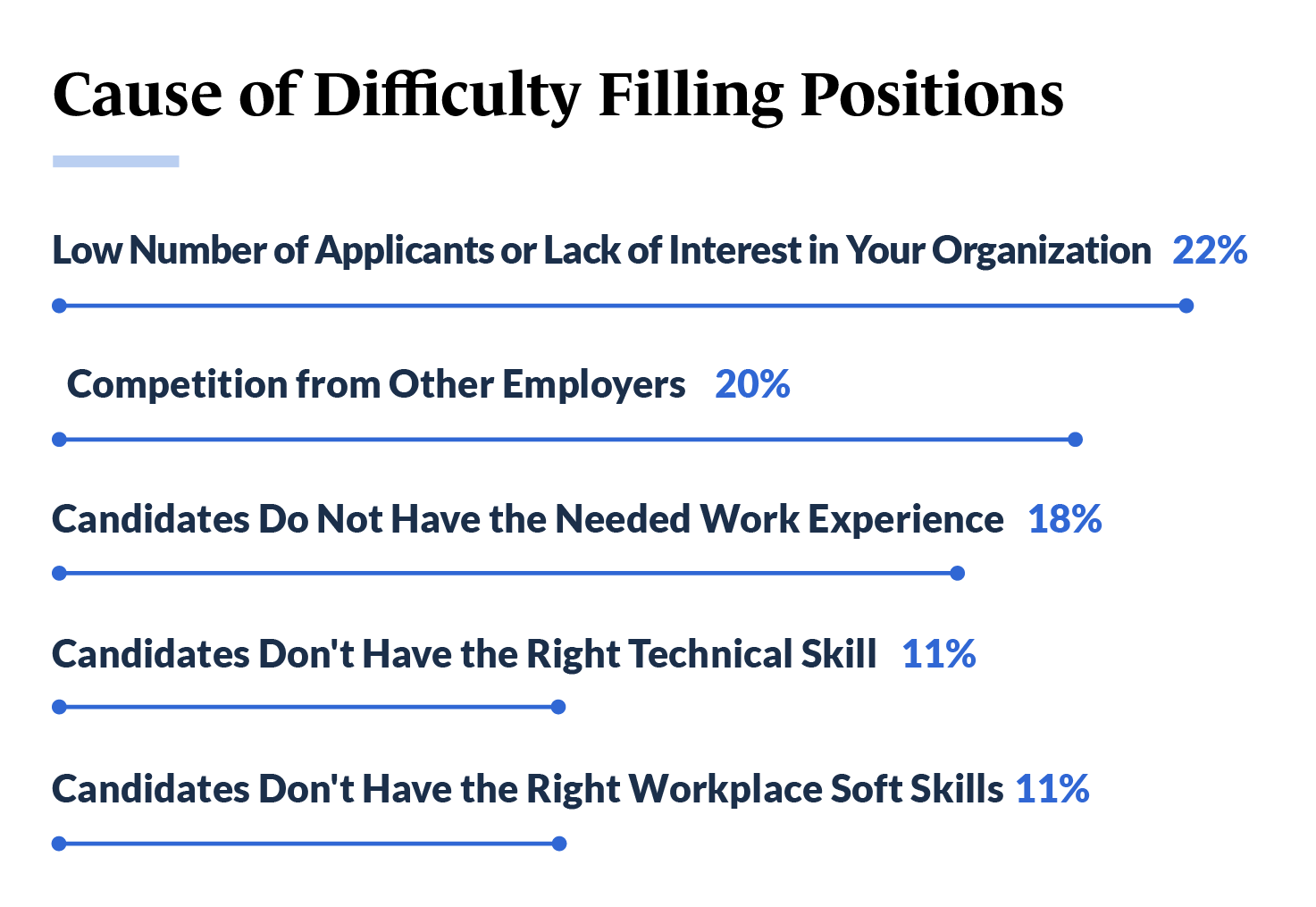 Many business owners cited the lack of necessary work experience among candidates as a primary challenge (18%), while 17 percent of respondents surveyed identified competition from other employers as their main hurdle.